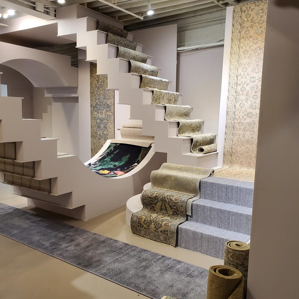 Inventive retail displays for the R:DESIGN showroom, featuring MC Escher inspired stair-runner installation.