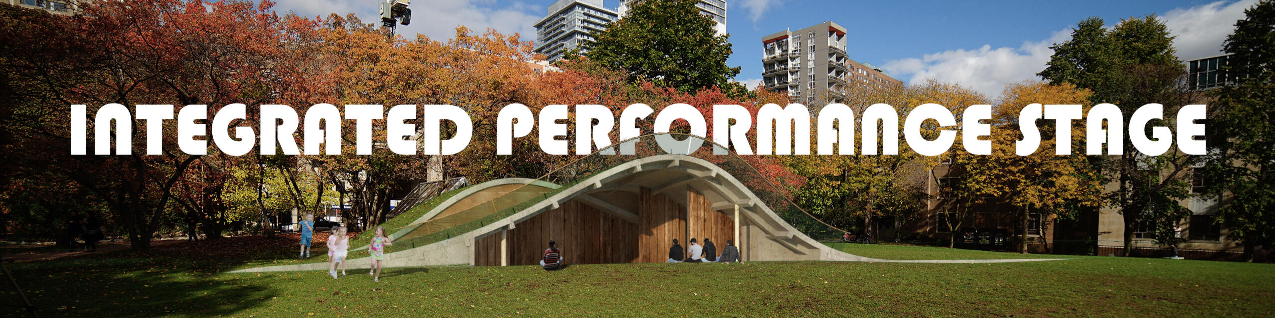 Design for performance stage emerging from the earth within the Kerr Hall Quad.