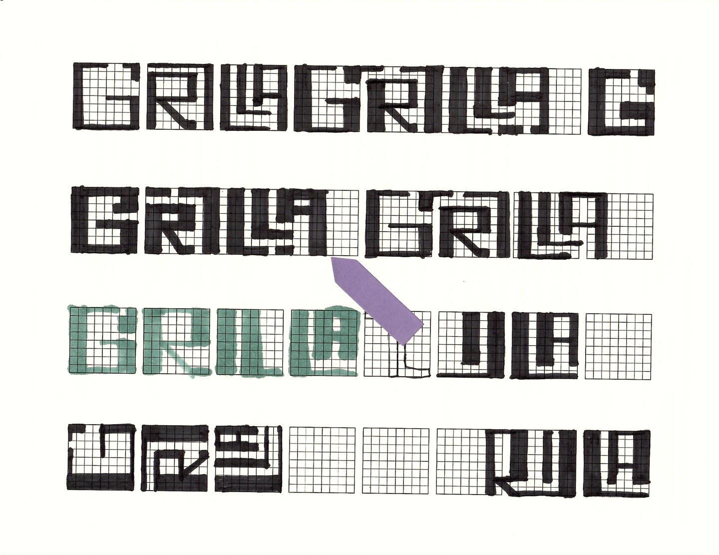 I began ideating on the design by sketching out some rough logos on a grid because I knew I wanted to use a custom font that feels rectilinear and balanced. The grid allowed me to play with proportions and weight while being able to balance the positive and negative space. The team liked the bold lettering and stencil-like appearance because it was very divergent from the original logo design.