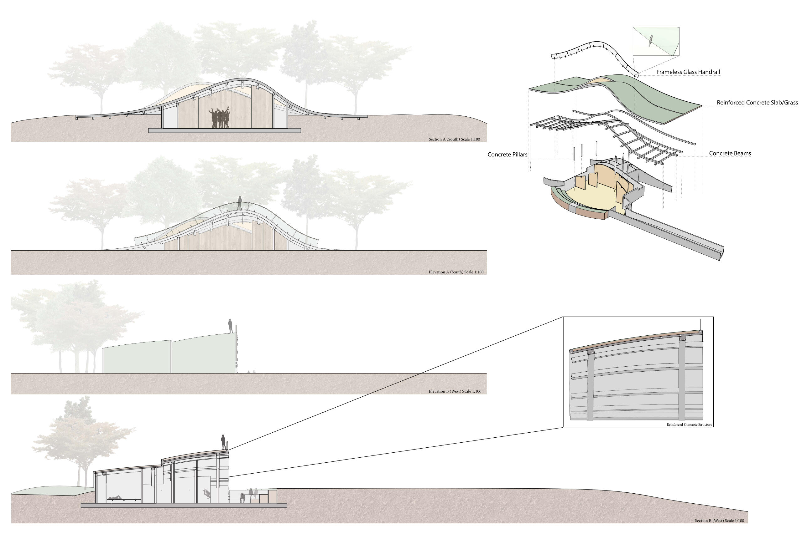 General assembly drawings from a 3D model created in Rhino. The drawings were exported and post-processed in Adobe Illustrator and Photoshop.